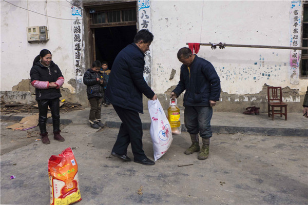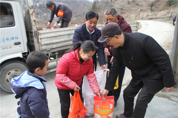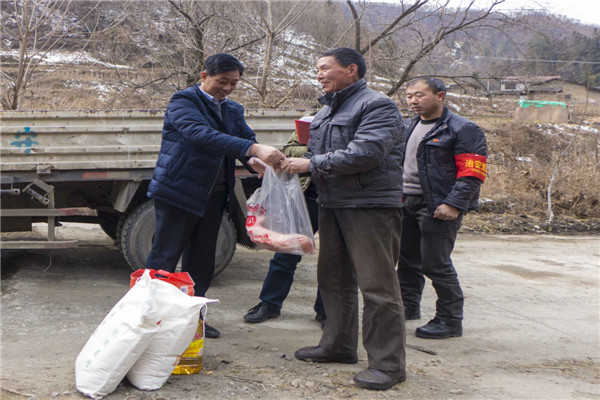 2018年2月7日,安康寶業(yè)公司扶貧工作組響應(yīng)市工商聯(lián)“萬(wàn)企幫萬(wàn)村”的號(hào)召,與漢濱區(qū)中原鎮(zhèn)麻廟村結(jié)為幫扶對(duì)象,在春節(jié)來(lái)臨之際他們冒著嚴(yán)寒和冰雪路滑,給該村47戶貧困戶送去了米面糧油和大肉。