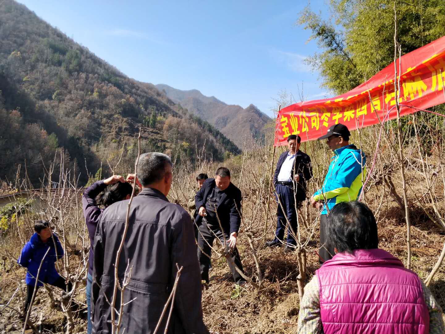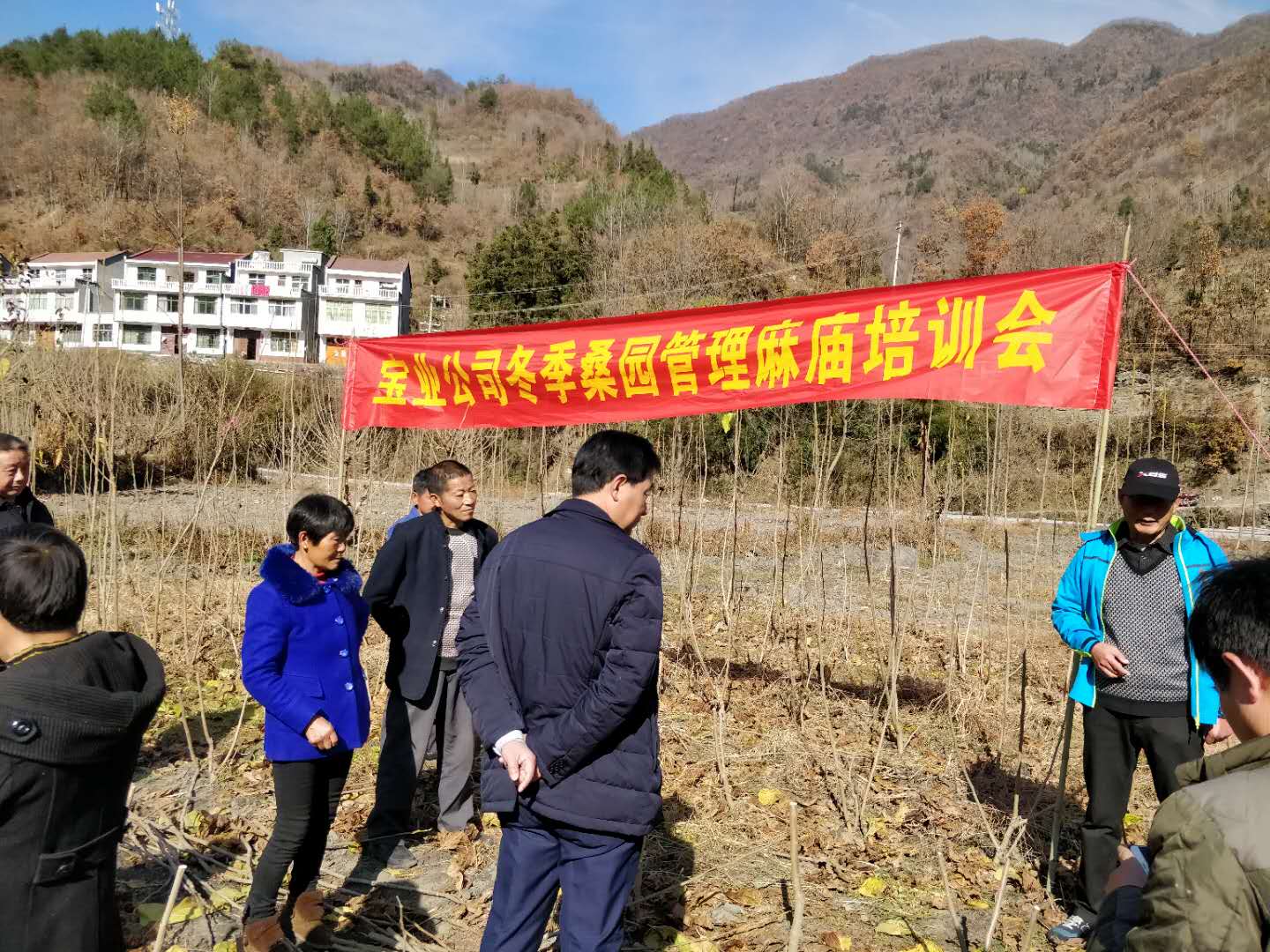 14. 2018年11月26日(周一),陳正余、譚照明、代均康、蘇鳳剛、馬釗、彭福等,到麻廟村進(jìn)行新栽桑樹樹型養(yǎng)成和冬季桑園管理技術(shù)培訓(xùn),麻廟村“兩委”班子成員、合作社養(yǎng)蠶大戶共23人參加了培訓(xùn)。陳正余現(xiàn)場手把手的給大家示范講解,使參培人員基本掌握了相關(guān)的技術(shù)要求。同時(shí),公司給村上送去了價(jià)值5200余元的2000kg生石灰、100kg鹽、50把桑剪。