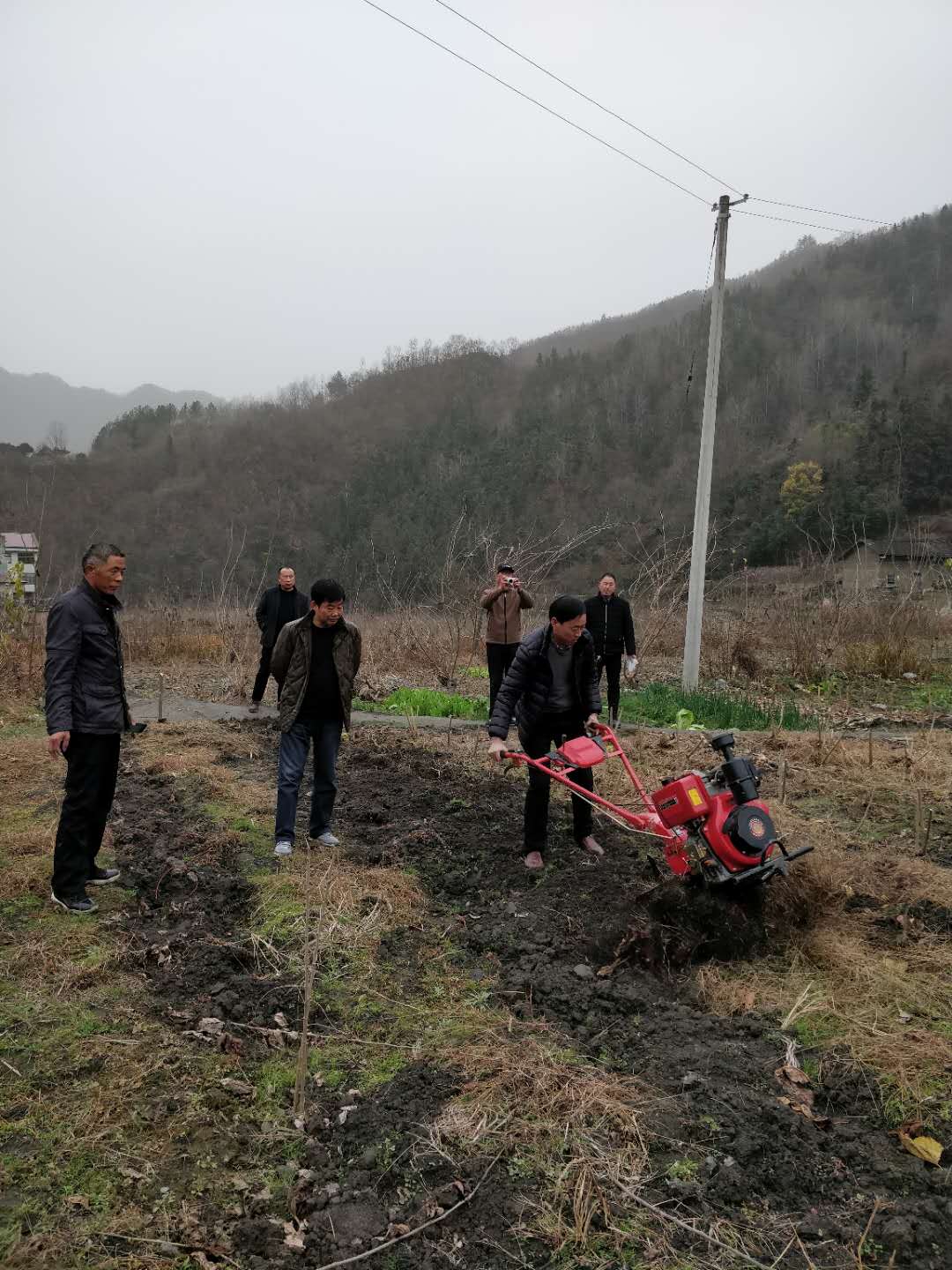 發(fā)展中心小王一行,給村上送去了價(jià)值6600元的兩臺(tái)小型旋耕機(jī),用于